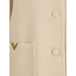 The Wool Drap Caban by Valentino is a refined outerwear piece with a classic collar and a relaxed fit. The design is enriched with the iconic V Gold detail on the pockets, a signature of the Maison. A front button closure and virgin wool construction with floral, striped, and VLogo lining complete the model’s elegance.