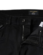 Gorgeous brand new, 100% Authentic Dolce & Gabbana cotton tattered skinny denim jeans with logo plaque.