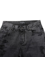 Gorgeous brand new, 100% Authentic Dolce & Gabbana Skinny Fit Jeans, crafted from high-quality black cotton denim. Designed with a sleek skinny silhouette and distressed tattered detailing, these jeans offer a modern, fashion-forward look. Featuring classic five-pocket styling and a zip-button closure, they deliver both comfort and statement style—perfect for streetwear or elevated casual outfits.