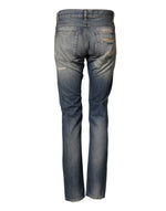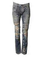 blue tattered skinny jeans. Designed with a modern slim silhouette, they feature distressed detailing and premium denim construction for a stylish and edgy look. Perfect for casual days or nights out, they deliver effortless Italian style with a bold, contemporary attitude.