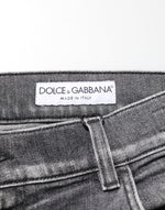 Made in Italy from premium grey cotton denim, these slim fit jeans feature subtle distressed details, a faded wash, and a modern silhouette. Styled with a five-pocket design, button and zip closure, and finished with a signature Dolce & Gabbana logo plaque on the back pocket.
