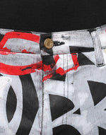 This item has a minor defect, the print is sticky and peels on the color all over the jeans (see pictures for details).