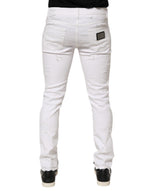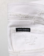 Gorgeous, brand new 100% Authentic Dolce & Gabbana White Distressed Denim Trousers, designed for a modern, edgy look. Crafted from premium cotton denim, these jeans feature ripped detailing and a contemporary fit, blending luxury craftsmanship with street-style appeal. Complete with classic five-pocket styling and a secure zip-button closure, they are perfect for casual and statement outfits.