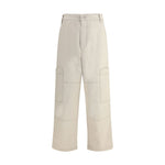 The Carré de-Nîmes cargo Jeans bring a contemporary twist to a utility classic. Crafted from soft cotton and hemp denim, they feature a high waist with engraved metal button closure and belt loops. Wide, straight legs are reinforced with stitched details at the knees, emphasizing durability and style. Oblique front pockets, applied side cargos, and laser-printed back pockets combine practicality with urban edge, while an embroidered patch on the back delivers a refined signature touch. A perfect balance between modern design and workwear heritage.