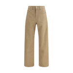 The de-Nîmes straight-leg denim Trousers by Jacquemus reinterpret classic jeans through a clean, refined aesthetic that reflects the brand’s minimalist vision. Crafted from beige cotton denim, they feature a mid-rise waist and a straight-leg silhouette for a timeless, well-balanced fit. Tailored details such as engraved metal buttons, metal rivets, contrast stitching, and the signature “J” belt loop add subtle character while preserving understated elegance. The back yoke and waistband label complete the design, making these jeans a versatile and modern essential for everyday wear.