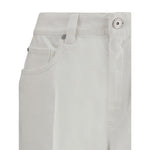 The “Contemporary Square” Trousers by Brunello Cucinelli are crafted from garment-dyed pure cotton denim, featuring a boxy cropped silhouette with a straight leg and pressed crease for a refined, structured look. The nickel-free monile detail on the back belt loop adds a signature touch of sparkle. Designed with a zip and button closure, classic belt loops, and patch pockets at the front and back, this model combines timeless elegance with modern versatility. Made from sustainable materials, these trousers reflect the brand’s dedication to craftsmanship and ethical luxury.