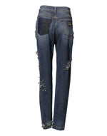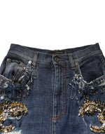 Gorgeous brand new, 100% Authentic Dolce & Gabbana jeans feature sparkling rhinestone embellishments on classic blue cotton denim. Designed with a flattering fit, they combine casual sophistication with a touch of luxury sparkle for standout style.