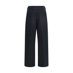 The cotton denim Trousers by Golden Goose feature a lived-in treatment that gives the piece character and a naturally worn appearance. The wide-leg design with a regular fit includes belt loops, two front pockets, and two welt pockets on the back. The front crease adds a tailored touch, while the double star detail on the back completes the look with an iconic signature. The denim undergoes a hand-crafted sanding process on both the front and back, enhancing the texture and depth of the wash.
