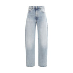 Baggy Jeans by Haikure, perfect for a casual, contemporary look. Featuring a front zipper and button closure, they have belt loops at the waist and a classic five-pocket design. On the back is applied a logoed leather patch, a distinctive detail of the brand. A versatile garment that combines comfort and style, ideal for any season.