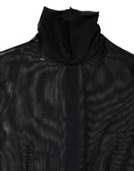 Gorgeous brand new with tags, 100% Authentic Dolce & Gabbana bodysuit crafted from sheer black mesh. This striking long-sleeve jumpsuit features a high neck design and a figure-enhancing silhouette, perfect for layering or making a bold fashion statement.
