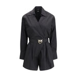 The buckle-belted Playsuit by Pinko featuring a feminine, contemporary design. The style includes a V-neckline, long sleeves with buttoned cuffs, and a matching belt with the signature logo buckle that accentuates the waistline. A versatile and polished piece, ideal for both refined and casual-chic looks.