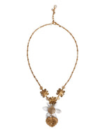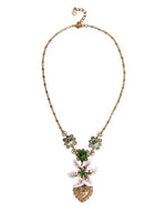 Gorgeous brand new, 100% Authentic Dolce & Gabbana gold-tone floral necklace features a mix of stone embellishments, a lobster clasp closure, a gold-tone chain and branded sacred heart pendant.