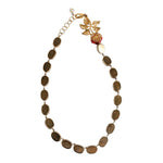 Gorgeous brand new, 100% Authentic Dolce & Gabbana statement necklace.This exquisite piece features large oval-cut green crystals, accented with a stunning red rose and enameled green leaves, set on a gold-tone chain. The bold floral motif embodies Dolce & Gabbana’s iconic romantic and feminine aesthetic, making it a standout accessory for any occasion.
