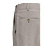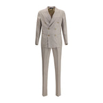 Gi Capri’s virgin wool Suit consists of a blazer jacket and pants. The double-breasted jacket features a button closure, welt patch pockets on the front, a slit pocket and two slits on the back for a comfortable fit. The peaked lapels add a touch of elegance. The pants, with a zipper and button closure, have slash pockets and welt pockets on the back, as well as belt loops. A refined and versatile suit, perfect for formal and sophisticated occasions.