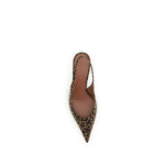 The Anok Sling 105 Pump in Leopard Print by Amina Muaddi embody the brand’s signature fusion of bold style and Italian craftsmanship. Crafted from leopard-printed suede, these slingback pumps feature a pointed toe and Amina Muaddi’s signature sculptural 105mm heel. A striking yet elegant design that perfectly elevates both day and evening ensembles.