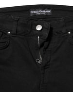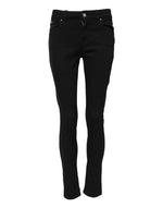 black skinny jeans, crafted from premium cotton with a hint of stretch for comfort and flexibility. The sleek, form-fitting design creates a modern, flattering silhouette, while the deep black wash adds versatility for effortless styling. Perfect for casual outings or dressed-up looks, these jeans combine contemporary style with high-quality Italian craftsmanship.
