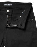 black skinny jeans, crafted from premium cotton with a hint of stretch for comfort and flexibility. The sleek, form-fitting design creates a modern, flattering silhouette, while the deep black wash adds versatility for effortless styling. Perfect for casual outings or dressed-up looks, these jeans combine contemporary style with high-quality Italian craftsmanship.