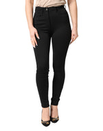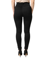 black skinny pants, crafted from premium nylon with a hint of stretch for comfort and flexibility. The sleek, form-fitting design creates a modern, flattering silhouette, while the deep black wash adds versatility for effortless styling. Perfect for casual outings or dressed-up looks, these pants combine contemporary style with high-quality Italian craftsmanship.