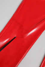 high-waist skinny pants in striking shiny red. Crafted for a sleek, body-hugging fit, they combine contemporary edge with luxurious Italian craftsmanship. The high waist enhances the silhouette for a flattering, confident look, while the vibrant red tone ensures you stand out at any event. Perfect for fashion-forward occasions, evening outings, or statement-making ensembles.