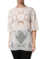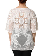 white embroidered lace blouse. Crafted with intricate lacework and delicate embroidery, it offers a romantic, elevated look. The short sleeves add a touch of lightness, making it perfect for warm-weather styling or elegant daytime occasions. A beautifully detailed piece that showcases the brand’s signature Italian craftsmanship and refined elegance.