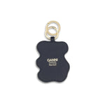 The teddy bear Keyring by Ganni reproduces the shape of a teddy bear holding a heart, embellished with the brand’s logo. Complete with ring and clasp, it is an original and practical accessory, perfect for adding a touch of style to even your everyday items.