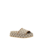 Modern design with platform style, Offers comfort without sacrificing style, Flat sole provides stability, Leather trim adds a touch of elegance, Iconic all, over GG Supreme pattern, Recognizable and sophisticated detail, Perfect for those looking for a versatile and trendy accessory, Designed for women