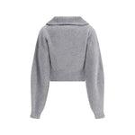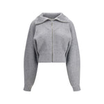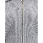 Sportmax’s gray wool and cashmere blend Calipso cardigan features a high collar and metal zipper. It features wide dropped-shoulder sleeves, a narrower waist, and a regular fit for a soft, contemporary look.