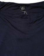 blue mini dress, featuring a glamorous off-shoulder neckline. Adorned with delicate embellishments, it adds sparkle and sophistication to a playful, chic silhouette. The mini length highlights a youthful, flirty style, perfect for parties, evening events, or special occasions. A standout piece that blends contemporary design with refined Italian craftsmanship.