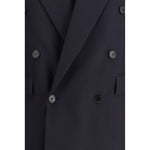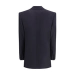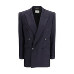 The long wool-gabardine Blazer By Saint Laurent showcases the brand’s tailored elegance through a strong, elongated silhouette. The double-breasted construction, structured shoulders and peaked lapels emphasise its refined presence, while the flap pockets and chest welt pocket introduce balanced detailing. Buttoned cuffs and a double back vent complete a Coat that embodies the timeless sophistication By Saint Laurent.