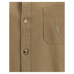 The Cassandre Overshirt in cotton and linen gabardine by Saint Laurent features a clean construction with oversized button fastening, pointed collar, and a chest pocket adorned with the Cassandre embroidery. Crafted from certified cotton, it offers a compact yet lightweight texture, complemented by adjustable cuffs and side slits for ease of movement. Subtle and refined, it captures the Maison’s signature balance between utilitarian spirit and sartorial sophistication, embodying a timeless sense of everyday elegance.