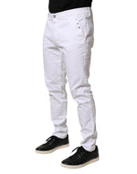 pants showcase modern Italian tailoring with a crisp white hue and a sleek skinny fit. Crafted from premium cotton, they feature a comfortable mid-rise waist and a clean chino design that pairs effortlessly with both casual and smart looks. Perfect for achieving a refined, contemporary style.