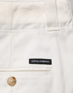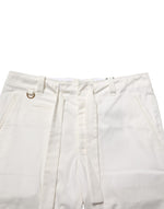 trousers are tailored in white cotton with added stretch for a comfortable, flexible fit. Designed with a cropped length, they feature a mid-rise waist, slim silhouette, and clean lines that bring a modern edge to classic tailoring. Perfect for creating refined yet contemporary looks, whether dressed up with a blazer or styled casually.