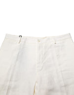 men’s trousers are tailored from lightweight white linen, offering a crisp and breathable fit. Perfect for formal occasions or sophisticated summer looks, they combine classic tailoring with the brand’s signature luxury style.