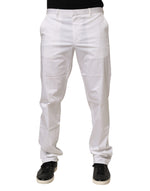 Gorgeous brand new, 100% Authentic John Richmond pants are tailored from fine white cotton with a touch of stretch, ensuring both comfort and a sharp fit. Designed in a formal dress style, they feature a clean silhouette that brings elegance and sophistication to any refined wardrobe. Ideal for pairing with dress shirts, blazers, or suits, these trousers are perfect for formal occasions or upscale evening wear.