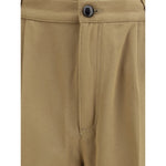 The Togo Pants by Namacheko embody the balance between sartorial precision and contemporary functionality. Crafted from soft cotton, they feature a sharply tailored silhouette with front slit pockets and a bold oversized button fastening with zip closure. Belt loops and welt back pockets enhance the clean lines, while the small pocket details on the right leg add a subtle utilitarian touch. A design that merges sophistication with everyday practicality.