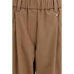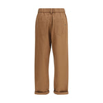 The cotton Trousers by Brunello Cucinelli reinterpret essential tailoring with quiet refinement. Crafted in a classic five-pocket design, they feature an elasticated waistband with belt loops that balances structure and comfort. Two front pleats add subtle volume, while the high-rise waist and regular fit create a clean, elongated silhouette. Finished with a cuffed hem and a monochrome palette, they embody the brand’s understated elegance and versatile sophistication.