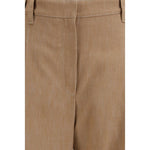 The denim-effect twill wide Pants by Brunello Cucinelli express contemporary sophistication through a tailored construction enhanced by subtle monili detailing, a signature accent of the brand. The concealed front fastening preserves a clean line, while side slit pockets and rear patch pockets complement the wide silhouette. The box-pleat detail adds structure and movement, creating a refined balance between elegance and modern appeal.