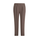 Brunello Cucinelli’s tailored Pants blend classic elegance with contemporary comfort. The elasticized waistband and mock front closure give the garment a refined look while maintaining a relaxed fit. The two side welt pockets and back pockets add functionality, while the tightening bottom enhances the leg line with a modern, casual touch.