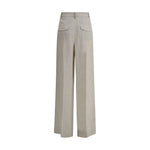 Brunello Cucinelli’s wide-leg linen Pants feature a weave enriched with lamé details, which create delicate light reflections for an elegant and sophisticated effect. The front zipper-and-button closure ensures a secure fit, while the belt loops at the waistband are embellished with iconic appliquéd shiny jewels, adding a distinctive touch to the garment. Two side welt pockets and two back flap pockets complete the design, offering practicality and style.