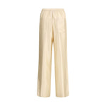 The Kadala Trousers by Loulou de Saison are crafted in smooth satin with a medium-weight, non-stretch hand. The straight-leg silhouette and mid-rise waist create a balanced, understated elegance, while the elasticated waistband ensures comfort and ease without disrupting the fluid drape of the fabric. Designed with a standard fit, they are a refined everyday piece to wear from day to evening with effortless sophistication.