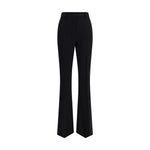 The Flared Fitted Trousers by Sportmax are crafted from stretch wool twill and feature a sculpted fit that gently widens at the hem, creating an elongated, balanced silhouette. The low-rise waist and masculine tailoring details lend character and structure, while pressed creases and welt pockets highlight the precision of the cut. An essential and contemporary piece that reinterprets the brand’s formal language with a refined, modern sense of femininity.