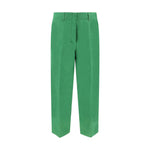 The Max Mara Sportmax linen Paniere Trousers feature a clean silhouette with a front hook and zip fastening. Featuring two side slash pockets and two welt pockets on the back, they combine practicality and sophistication. The monochrome pattern enhances the minimal design, making them perfect for elegant and versatile summer looks.