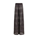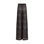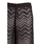 The wide zigzag mesh Trousers with sequins by Missoni showcase the brand’s signature craftsmanship through an iconic, dynamic texture. Crafted from a viscose blend, they feature a zigzag mesh design enriched with sequins that catch the light with subtle, fluid reflections. The wide silhouette enhances movement and ease, making this style a refined and distinctive addition to warm-season wardrobes.