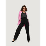 The Only ONLBERRY HW WIDE PANT TLR NOOS 15258191 women’s palazzo trousers are the perfect choice for those seeking an elegant and contemporary look. Made from a blend of 87% polyester and 13% elastane, these trousers offer a comfortable and slightly stretchy fit that enhances the silhouette. The wide-leg palazzo cut adds a sophisticated touch and elongates the figure, while the high waist ensures a flawless fit. Featuring belt loops, a front zip and button closure, and practical side pockets, they are ideal for both office wear and formal or smart-casual occasions. Pairing them with a blazer and heels, as shown in the photo, creates a refined and feminine outfit.