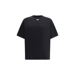 Prada’s cotton T-Shirt features a simple yet sophisticated design. The ribbed crew neck ensures a comfortable and classic fit, while the monochrome pattern maintains a clean and versatile look. The triangular plaque with the brand’s iconic contrasting monogram applied to the front adds a distinctive and recognizable detail, emphasizing the brand’s elegance.