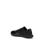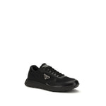 Prax 01 Sneakers by Prada, made of Re-Nylon and brushed leather, combine contemporary style and innovative materials. Equipped with laces, they feature an enameled triangle logo on the upper and screen-printed Prada Milano lettering on the tongue. The lightweight rubber sole with serrated welt ensures comfort and grip, while the removable leather-covered footbed completes the design with a functional touch.