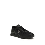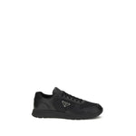 Sneakers by Prada, made of Re-Nylon and brushed leather, combine contemporary style and innovative materials. Equipped with laces, they feature an enameled triangle logo on the upper and screen-printed Prada Milano lettering on the tongue....