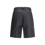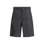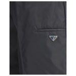 The Re-Nylon Bermuda Shorts by Prada merge contemporary design with a sustainable ethos. Crafted from ECONYL®, a regenerated nylon yarn produced from recycled ocean plastics, fishing nets, and textile fibers, they embody the brand’s forward-thinking approach. The clean silhouette features a matching fabric waistband, concealed zip and hook closure, front slanted pockets, and back welt pockets with buttons. The signature enamelled metal triangle logo on the side completes the look with a refined Prada touch.