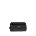 The Re-Nylon Beauty Case by Prada combines elegance and functionality thanks to Saffiano leather inserts and the iconic logoed metal triangle on the front. It features a zippered closure, a front pocket and a back pocket both zippered, and a lined interior complete with an additional zippered pocket to better organize every essential.