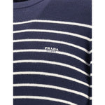 Prada’s virgin wool striped Sweater combines classicism and contemporary identity. Featuring a ribbed crew neck, it features a vibrant striped pattern and the iconic jacquard signature on the front, a distinctive detail that signs the garment with elegance and recognition.